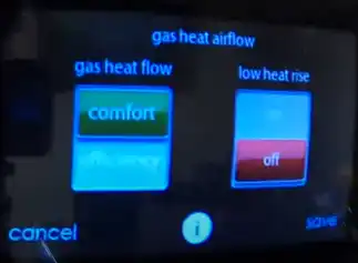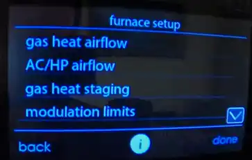So access the thermostat menu…you want to check furnace airflow settings / set-up