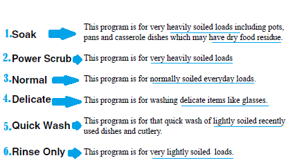 LG dishwasher programs symbols