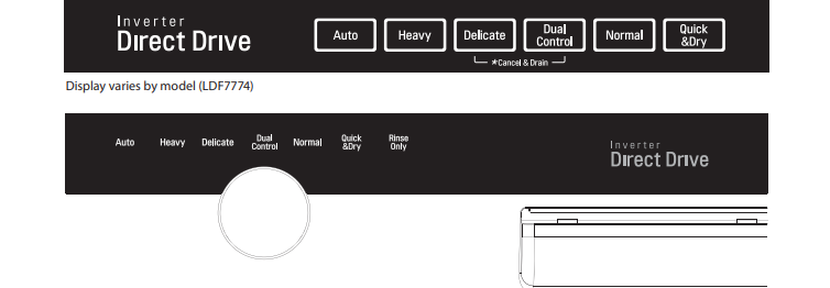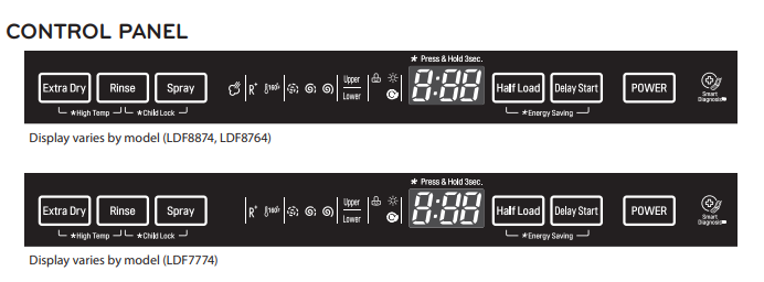 Of course, control panel symbols may vary on your model- For instance, the control panel symbols appear as below in LG dishwasher LDF8874 , LDF8764, and LDF7774.